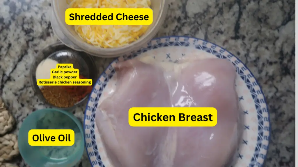 Prepare the chicken: Drizzle 1 tablespoon olive oil over the chicken. Season with rotisserie chicken seasoning, garlic powder, paprika, and black pepper. Air fry at 380°F for 18–22 minutes, or until fully cooked and golden.