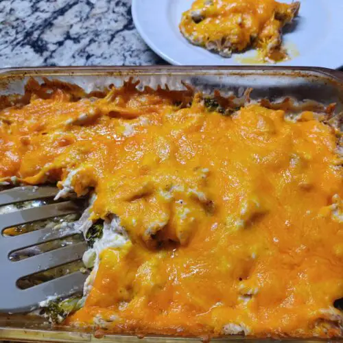 This Chicken Broccoli Alfredo Bake is an easy, creamy one-pan dinner made with tender chicken, broccoli, and a rich homemade Alfredo-style sauce. It’s comforting, and very family-friendly.